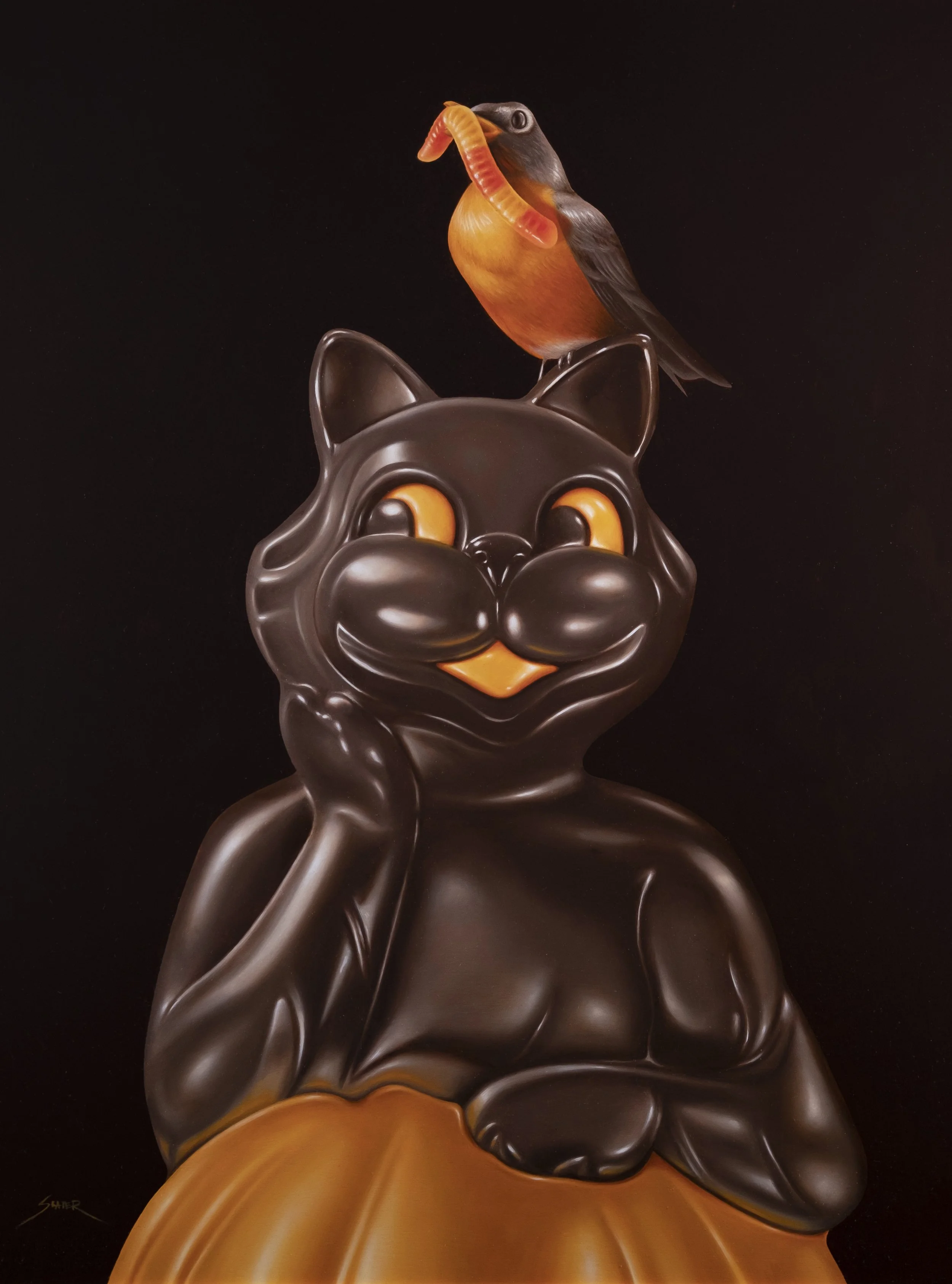 This new series conjures idols and symbols from ancient folklore and myth, clashing it against the kitschy plastic and colorful candy shell of our most celebrated modern pagan ritual; Halloween. This is my largest solo body of work to-date and was a thrilling challenge to create. The collection is subdivided into three series’, exploring folklore and myth, demon incarnations, and the contemporary candy-coated experience.